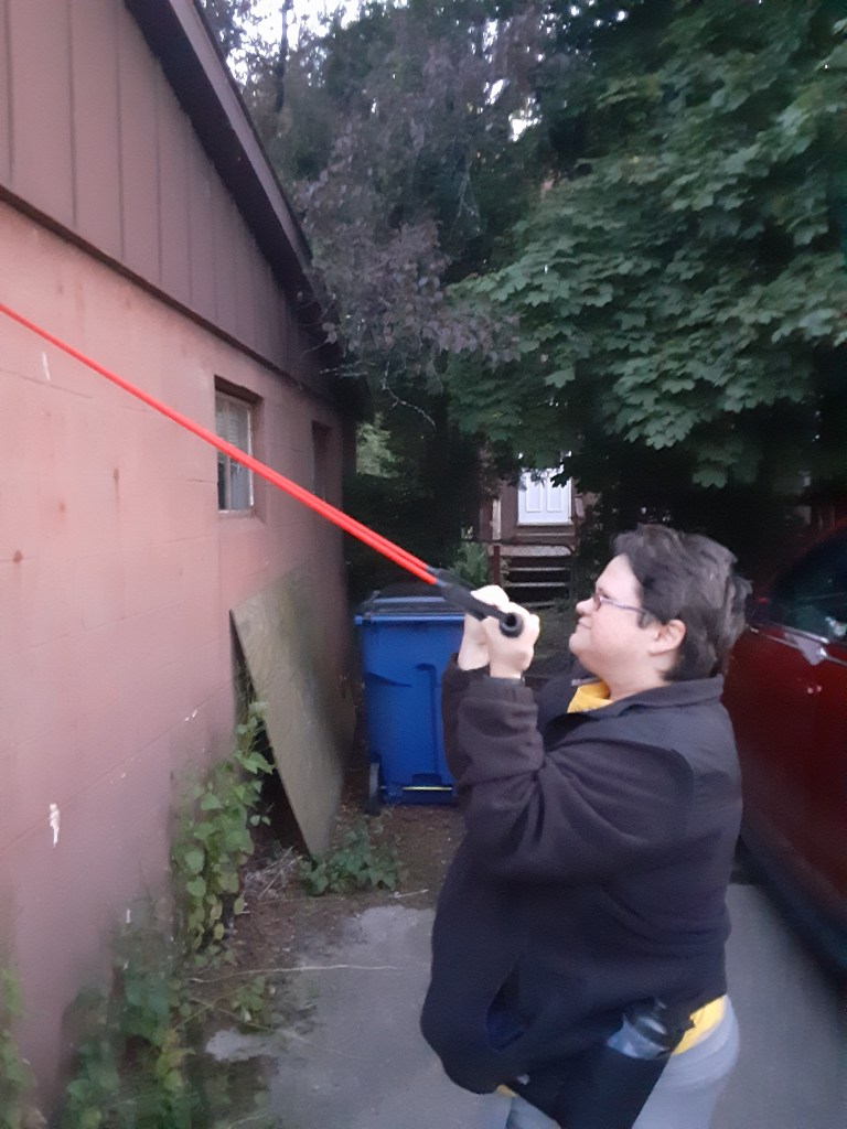 Then Saturday she came over to walk. We went for a nice long walk until my back started getting sore. When we returned to my house, she pulled out some rubber bands with hand grips on them. We began to do exercises that would work out my biceps, triceps, shoulders, and upper back. With each workout we did she asked me how my lower back felt. If I felt no pain, we did more reps. She kept trying new exercises until the muscles in my arms were screaming, “Denise stop torturing me.”
